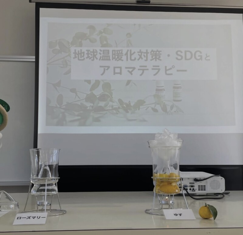 また来年度、楽しい授業ができそうです。今回蒸留した「みんなが育てた花のハーブウォーター」と「柚子ウォーター」「ローズマリーウォーター」は3種ブレンドしてルームミストとして持ち帰り楽しんでもらっています。